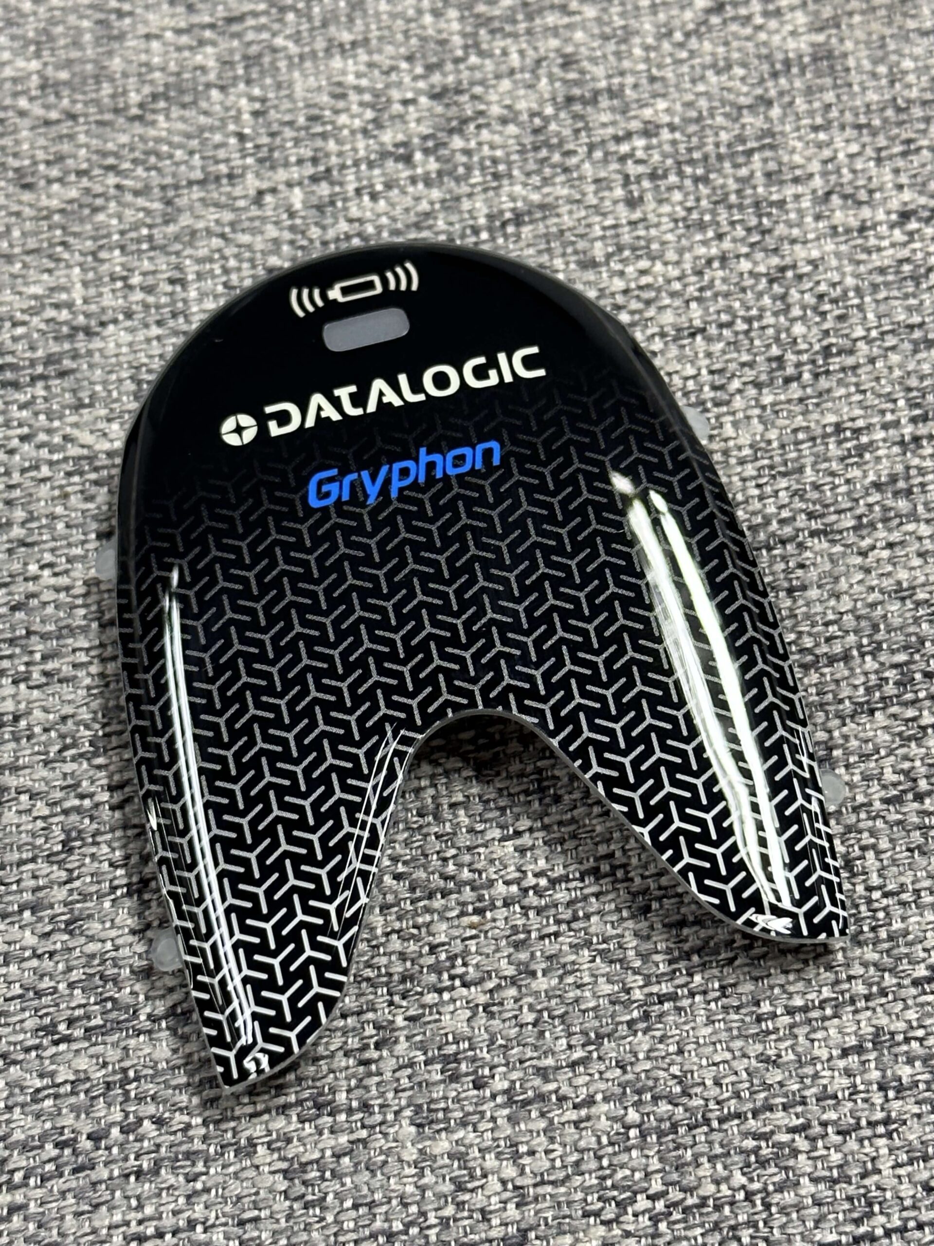 Branding and decorative elements are seamlessly integrated into plastic parts during the injection molding process, delivering optimal durability and long-lasting aesthetics. Shown here is an example of a handheld device utilizing this technology.